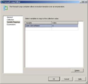 3. Select the variable User::ServerName and drag it into the Expression box.