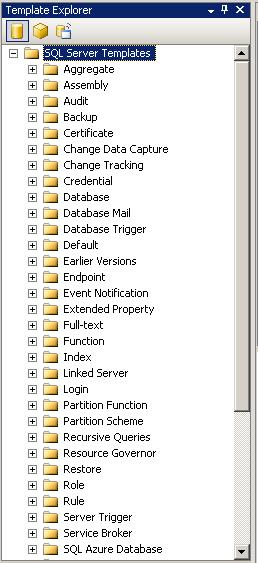 The template pane has a list of the “templates” that come with SQL Server and any templates that you create for yourself.