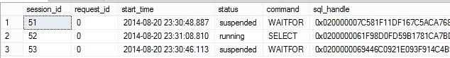 SELECT * FROM sys.dm_exec_requests WHERE session_id > 50