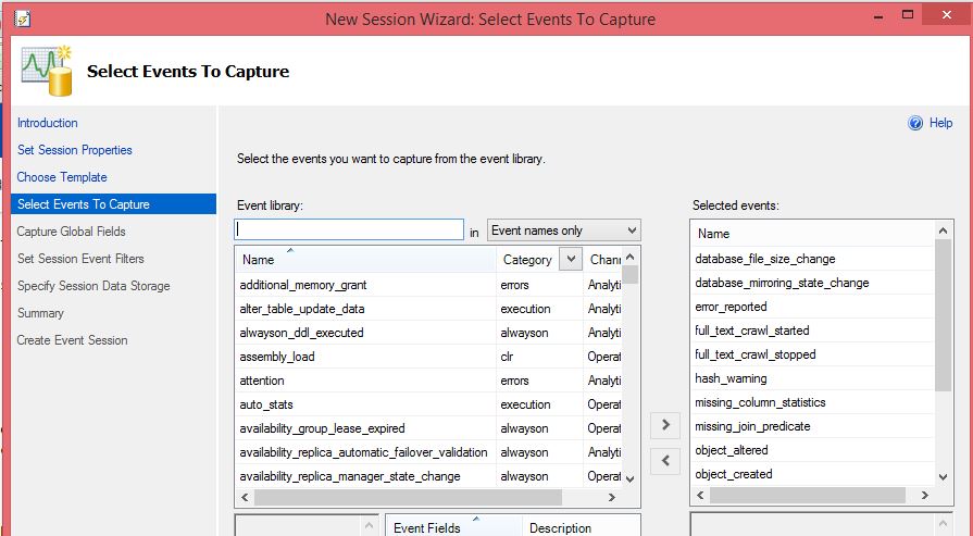 You can see that there are already a number of events already selected on the Select Events to Capture tab. As I understand it this is similar to the Events Selection option in Profiler. I’m not going to change any of them I’m just going to hit Next again.