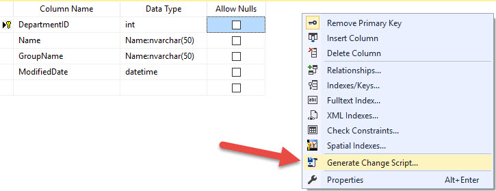 Right click in the white space and select Generate Scripts