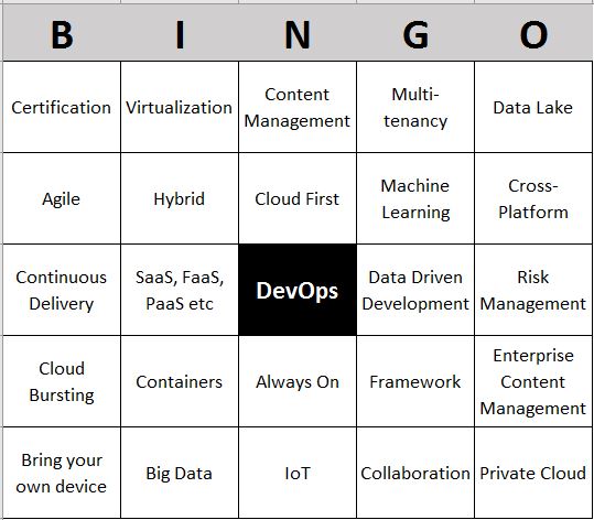So you can play buzzword bingo during your next meeting, here is your very own bingo card! Because this is a DevOps post you get that one free!