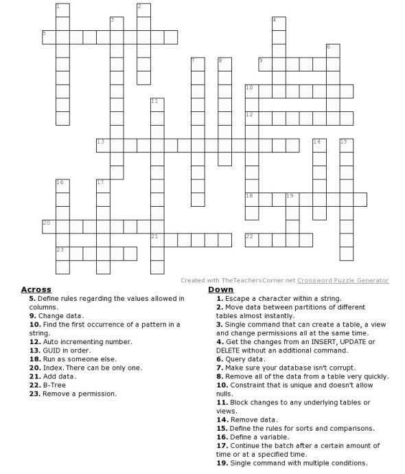 I did a SQL crossword last month (not my first one either) and it was pretty popular so I asked around and I’ve decided to make this a regular thing (end of the month or so) for a little while (till I get bored with it). I’m going to aim at a different subject each month but hey, we all know how these things go.