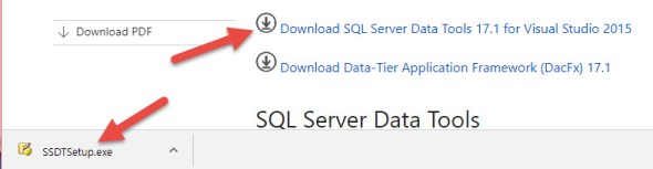 In case you are interested SSDT is basically a set of modules for Visual Studio. If you have Visual Studio installed then the modules are added. If you don’t have it installed then a minimal “Integrated Shell” version of Visual Studio 2015 will be installed.