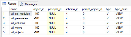 I wanted to spend a few minutes highlighting a couple of important tools for figuring out what information you have available to you within SQL Server. sys.all_objects and sys.all_columns. Note the All. These system views are almost exactly the same as sys.objects and sys.columns but with the single major difference that they include system objects. This let’s you do things like this: