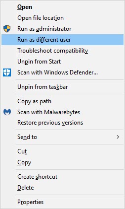 I would recommend “Run as Administrator” instead of “Run as Different User.” If you are logged on to your workstation with a non-administrator account, you will be prompted to enter an administrator logon account. In addition, you can change the properties of the shortcut to always run as administrator saving you the extra step of right-clicking. If you are logged in as a local administrator, run as administrator will not prompt you for credentials.