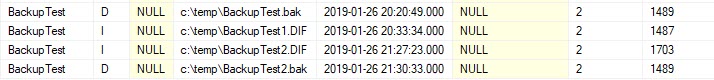 BACKUP DATABASE BackupTest TO DISK = 'c:\temp\BackupTest2.bak';