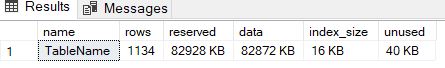 exec sp_spaceused [TableName];