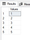 FROM (VALUES (1),(2),(3),(4),(5)) Nums([Values]);
