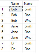 FROM (VALUES ('Bob'), ('Jane'), ('Dr')) First(Name)