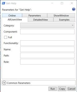 Years ago I blogged about how I like to use the SSMS scripting feature to learn how to do things. Well now I’m starting to learn Powershell and it turns out there is a GUI here as well that will help me learn to script. At least in a very basic way. For example, if I want to see what parameters are actually available for Get-Help and maybe script out a template to work with then I can do this: