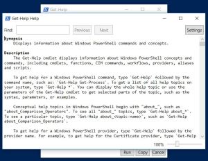 Now I have the window version of the help screen. Which if you look closely at tab list you’ll see is an option for the help command. I can now scroll down and see what my various options are. I’m going to go to the Show-Window tab and pull up the help for the Show-Command cmdlet (inception anyone?).