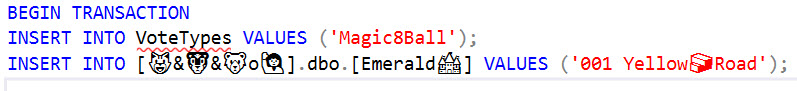 2. You don’t need to use a three part name. SQL assumes you mean the current database if you don’t specify otherwise.