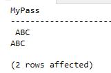 INSERT INTO #Password VALUES (CHAR(0) + 'ABC'), ('ABC');