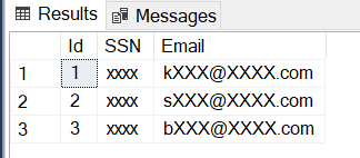 SELECT Id, SSN, Email FROM [dbo].[Employee];