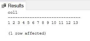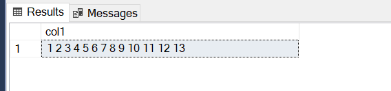 INSERT INTO #test VALUES ('1 2 3 4 5 6 7 8 9 10 11 12 13 14 15 16 17 18 19 20, 21, 22, 23, 24, 25, 26, 27, 28, 29, 30');