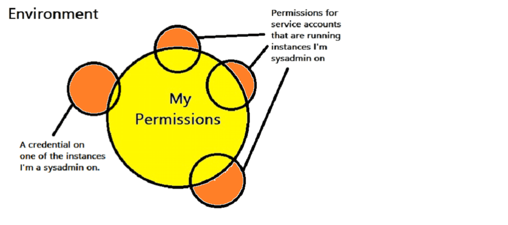 I do want to point out that this isn’t necessarily a problem. I have access to those service accounts and that’s ok. That’s part of the permission set I’m supposed to have. The same with credentials etc. This is all about having an awareness of what people can do not about keeping them from doing what they are supposed to be able to do.